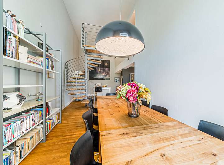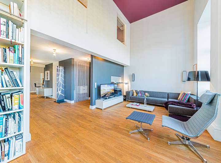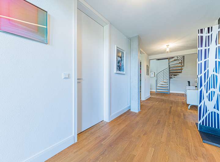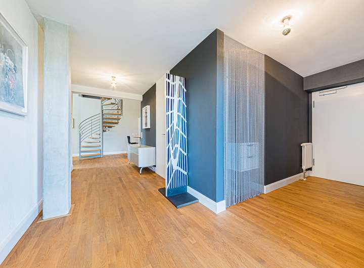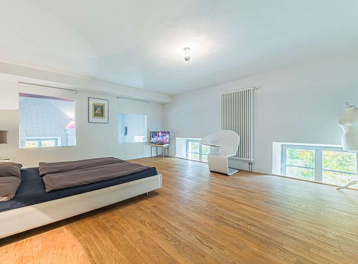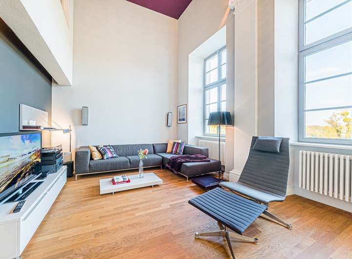 Großz?giges Wohnzimmer mit Ecksofa und Designer-Sessel