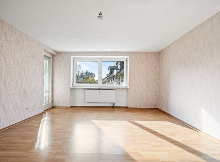 Das geräumige Wohnzimmer bildet das Herzstück der Wohnung: Großzügige Fensterflächen sorgen für viel Licht und schaffen eine angenehme Wohnatmosphäre. Vom Wohnbereich aus gelangen Sie ebenfalls auf den Balkon, der bei jedem Wetter zusätzlichen Platz zum Entspannen bietet.