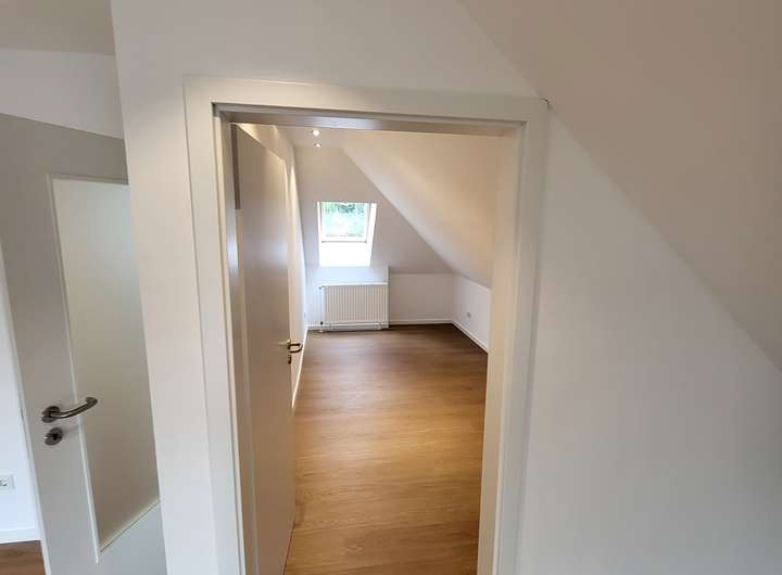 Der dritte Raum im Obergeschoss kann sowohl als Kinderzimmer oder als Home-Office genutzt werden. Dieser Raum verfügt über 2 Zugänge und könnte bei Bedarf aufgrund seiner Größe von 27 qm auch in zwei separate Räume aufgeteilt werden.