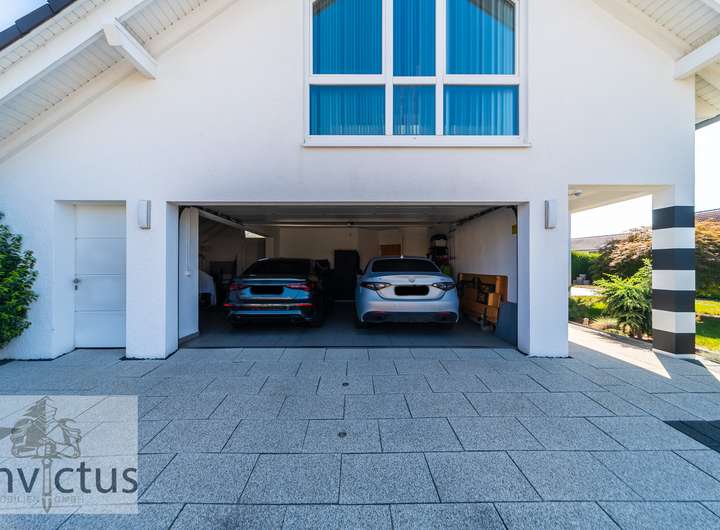 Die Doppelgarage bietet ausreichend Platz für zwei Fahrzeuge sowie für die Fahrräder, Motorräder, Gartengeräte und eine Werkbank. Von hier aus gelangen Sie ebenso direkt ins Haus, was besonders bei schlechtem Wetter äußerst praktisch und komfortabel ist, besonders an regnerischen Tagen.