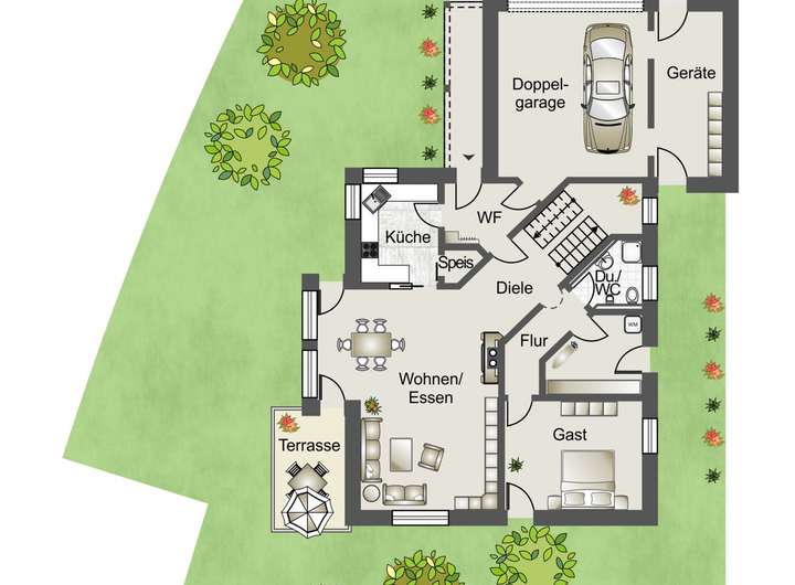 - große Doppelgarage + mind. 2 Außenstellplätze