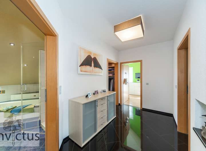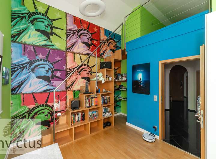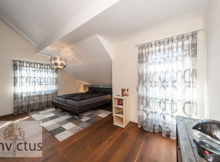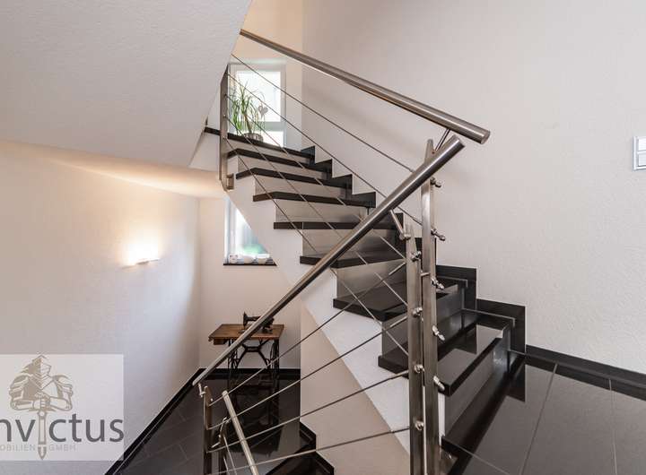 Über das elegante Treppenhaus gelangen Sie in das Obergeschoss - hier erwarten Sie vier geräumige Schlafzimmer, ein tolles Badezimmer mit Dusche und Wanne, ein Ankleidezimmer sowie eine Galerie und Balkon zum Verweilen. An heißen Tagen sorgt die integrierte Klimaanlage für eine angenehme Abkühlung.