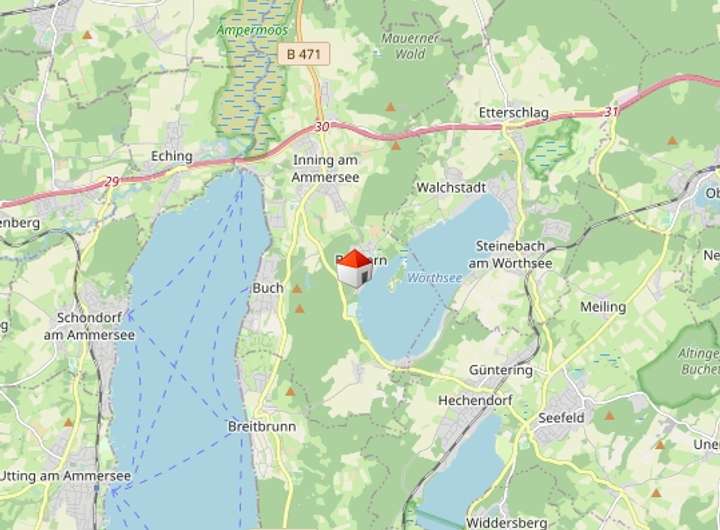 Die Immobilie befindet sich im idyllischen Ortsteil Bachern der Gemeinde Inning im oberbayerischen Landkreis Starnberg. Die Lage zählt zur beliebten Fünfseenregion westlich von München und bietet eine harmonische Verbindung aus Natur, Ruhe und exzellenter Anbindung an die Landeshauptstadt.