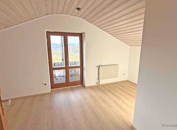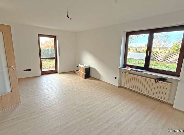 Die Doppelhaushälfte befindet sich an der Hauptstraße von Oderberg, nach Traunreut und ist durch einen Wall geschützt. Um den Anforderungen an moderne Wohnqualität gerecht zu werden, wurden bereits dreifach verglaste Fenster installiert. Diese sorgen nicht nur für exzellenten Schallschutz gegen den Straßenlärm, sondern auch für eine hervorragende Energieeffizienz.