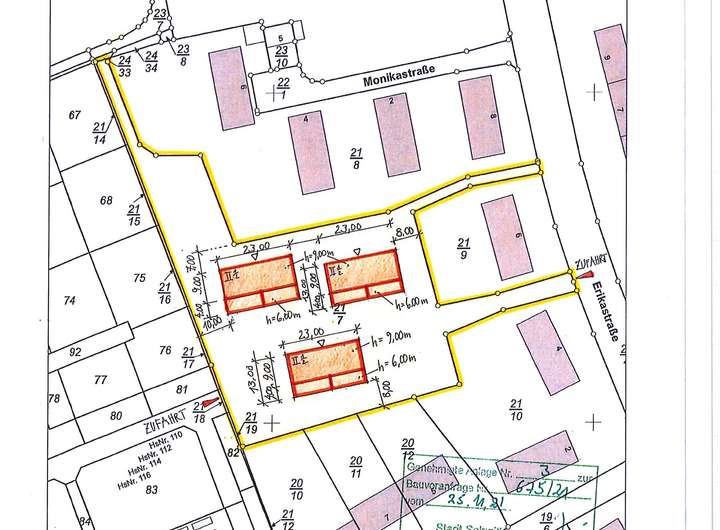 Eine positive Bauvoranfrage für insgesamt drei Mehrfamilienhäuser á 7-8 Wohneinheiten mit insgesamt ca. 1.800 m² Wohnfläche wurde im Oktober 2024 erteilt.