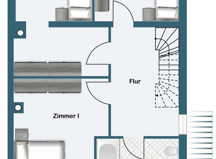 Im Bauantrag ist hier der Elternbereich mit Badezimmer vorgesehen.