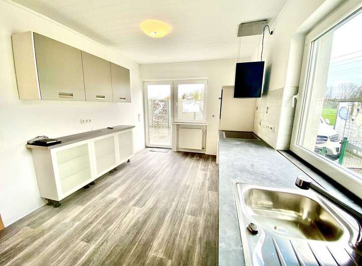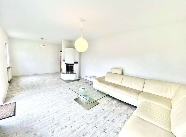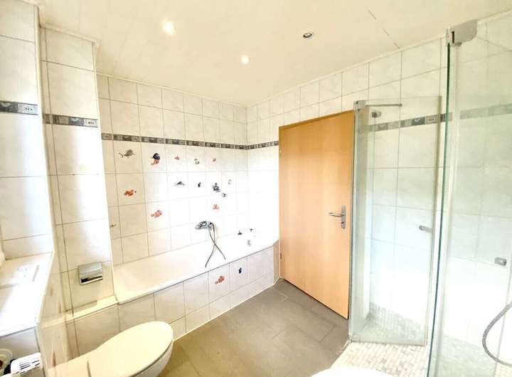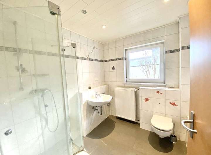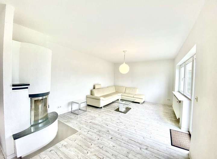 Das Haus beeindruckt bereits beim Betreten mit einem einladenden Empfangsbereich, der zu den verschiedenen Räumlichkeiten führt. Im Erdgeschoss befindet sich eine moderne, voll ausgestattete Einbauküche, die mit hochwertigen Geräten ausgestattet ist. Darüber hinaus gibt es ein großzügiges Wohnzimmer mit einem gemütlichen Kaminofen, der an kalten Wintertagen für eine behagliche Atmosphäre sorgt. Ein Dusch-Wannenbad und ein separates Gäste-WC stehen ebenfalls zur Verfügung, um den Komfort für Bewohner und Gäste zu gewährleisten.