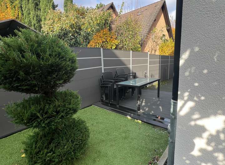 Der Außenbereich überzeugt durch seine ruhige, gepflegte Gestaltung: Eine große überdachte Terrasse, die stilvolle Gartenanlage sowie Rückzugsorte machen das Anwesen zu einer wahren Wohlfühloase. Hier lassen sich entspannte Stunden genießen – fernab des Alltags, jedoch mitten im Rhein-Main-Gebiet.