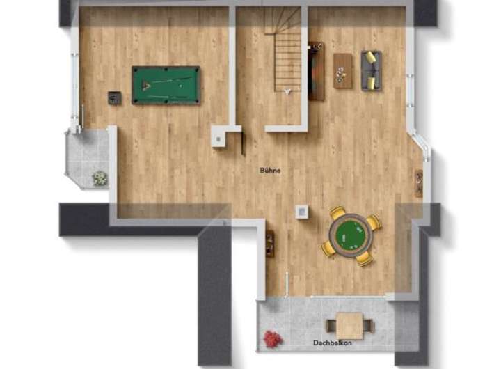 Das DG ist für den Ausbau vorbereitet mit 2. Balkone