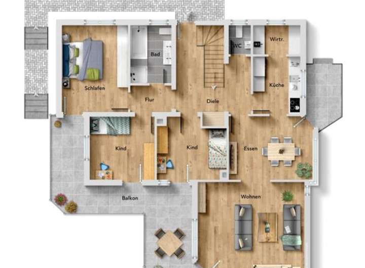Idealer Grundriss mit vielen Gestaltungsmöglichkeiten