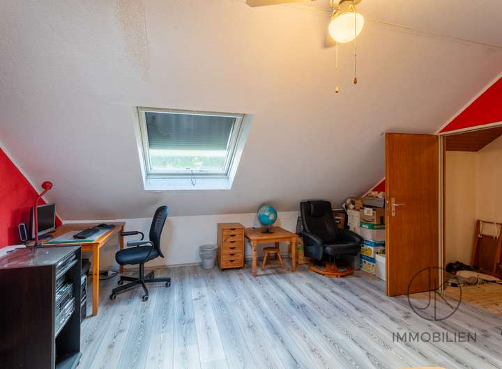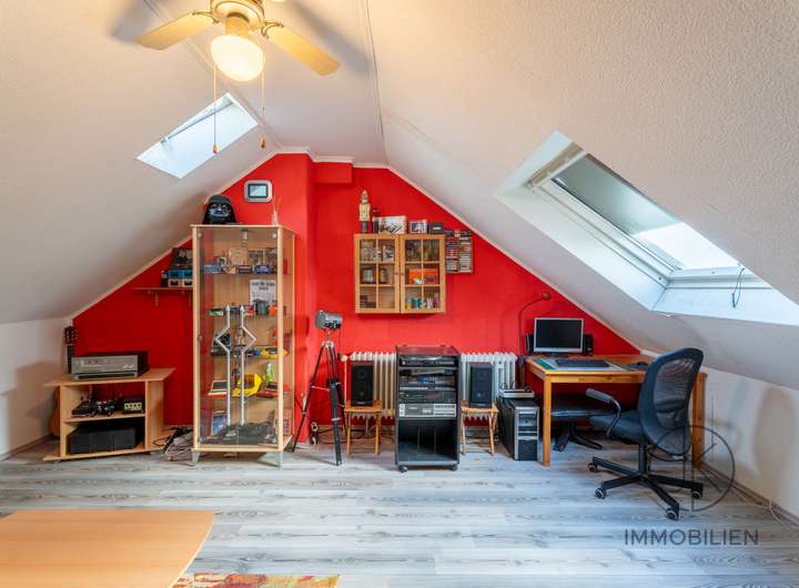 Das ausgebaute Dachstudio schafft zusätzlichen Raum, der flexibel genutzt werden kann, ob als Arbeitszimmer, Hobbybereich, Jugendzimmer oder ein ruhiger Rückzugsort.