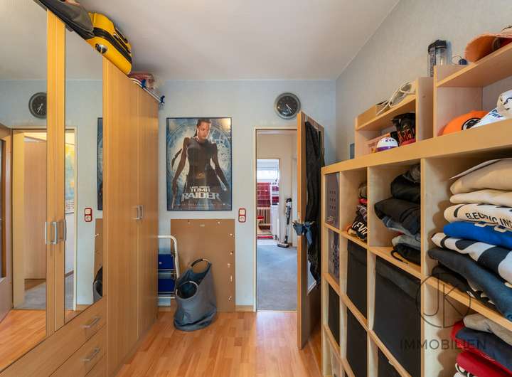 Auf dieser Etage befinden sich drei Schlafzimmer, wodurch sich der Bereich ideal für Familien, Homeoffice oder Gäste eignet. Zwei der Zimmer verfügen über einen direkten Zugang zum Balkon, was zusätzlichen Komfort bietet. Das Tageslichtbad mit Badewanne ist hell gestaltet und bietet eine gute Grundlage für zukünftige Modernisierungen.