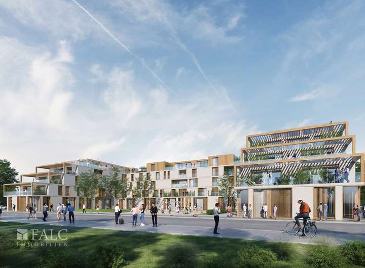 Hier sollen 56 Wohnungen, 4 Gewerbeflächen und 91 Tiefgaragenstellplätze auf vier Stockwerken mit einer Bruttogeschossfläche von ca. 10.500 m² entstehen. Die Vision des Mehrgenerationenwohnens wird durch eine durchdachte Planung begünstigt, die sowohl Penthouses als auch familienfreundliche Wohnungen umfasst. Ebenso sorgen Praxis- und Ladenflächen im Erdgeschoss für eine ideale Nahversorgung.