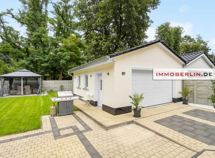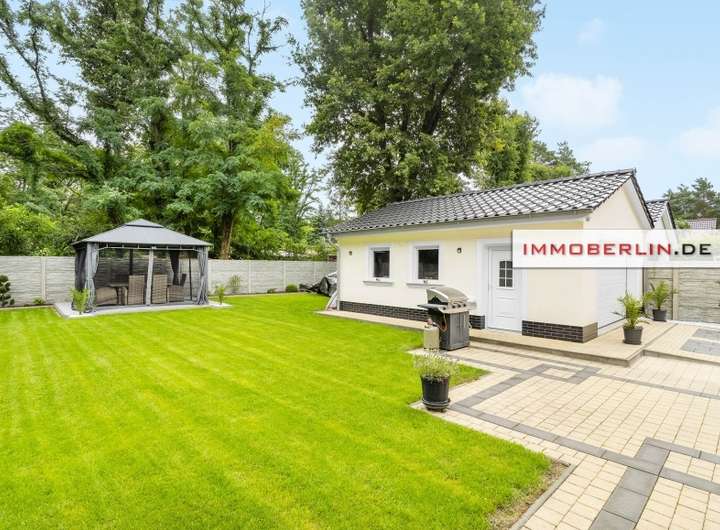 Dieses herrliche Grundstück wird von einer stilvollen Zaunanlage aus dem Jahr 2023 vollständig eingefriedet. Außerdem stehen ein Gartenpavillon sowie eine massiv gebaute und tagesbelichtete Doppelgarage zur Verfügung. Die ansprechend gepflasterte Auffahrt bietet zudem zusätzliche PKW-Stellplätze. Die Torzufahrt wie auch das Garagentor lassen sich elektrisch bedienen.