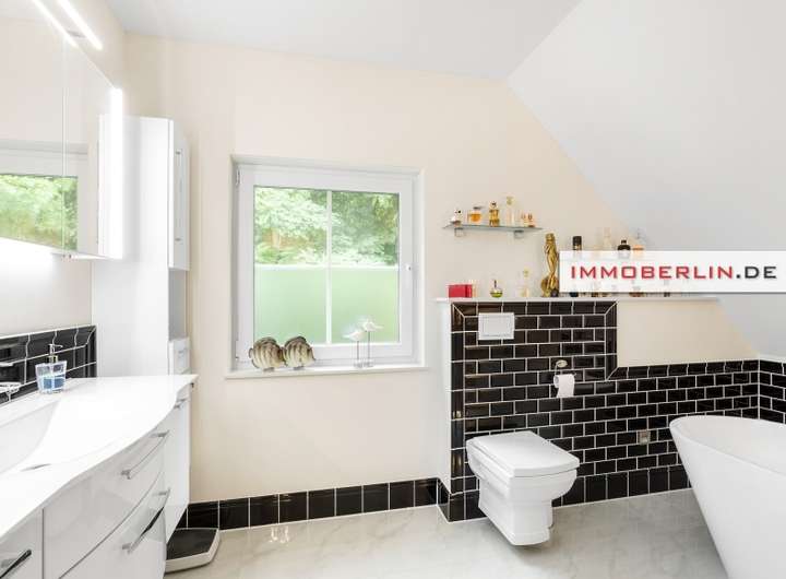 Beachtenswert behaglich ist auch das Obergeschoss, das mit drei wohnlichen Zimmern und einem großen, taghellen Luxusbad im exquisiten Fliesenkleid mit freistehender Wanne begeistert. Attraktiv sind u.a. die geräumige Diele und das große Zimmer, das sich als schöner Schlaf-, Wohn-, Arbeits-, Spiel- und/oder Hobbybereich mit drei zusätzlichen Fenstern im oberen Teil des Standerkers präsentiert.