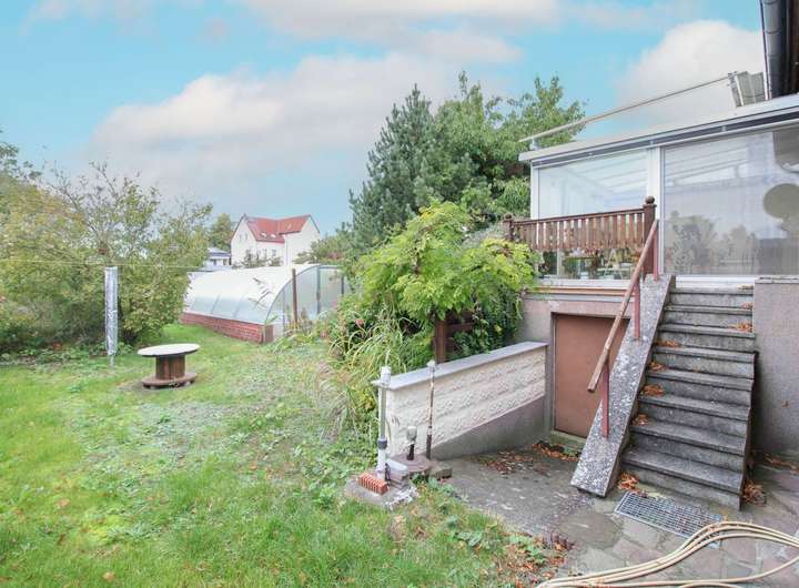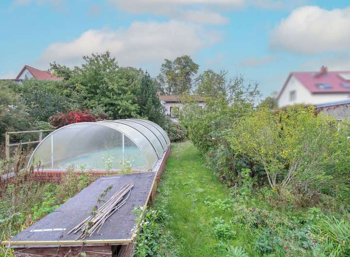 Das rund 800 m² große Grundstück lädt zum Spielen, Gärtnern und Genießen ein. Der Pool wartet darauf, mit etwas Liebe und Modernisierung wieder zum Mittelpunkt sommerlicher Familienmomente zu werden.