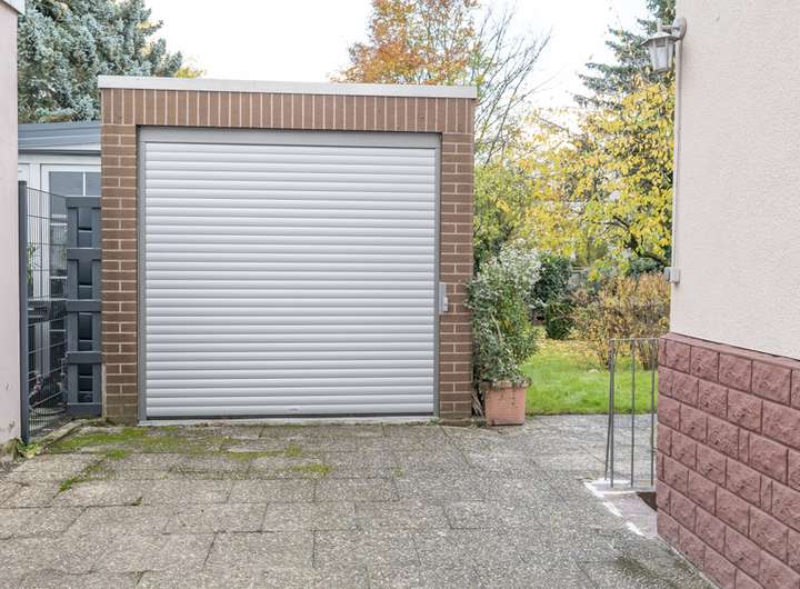 Neues elektrisches Garagentor mit Fernbedienung, Gartenanlagen mit Terrassen, Zaun und Einfriedung (2012–2023)