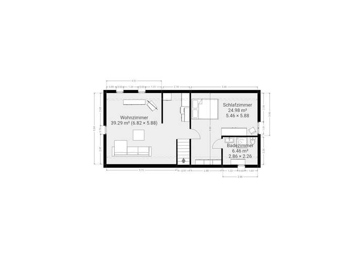 Im Dachgeschoss befindet sich eine Wohnung mit ca. 63 m² Wohnfläche. Die Dachgeschosswohnung ist mit einem Duschbad und kleiner Einbauküche ausgestattet.