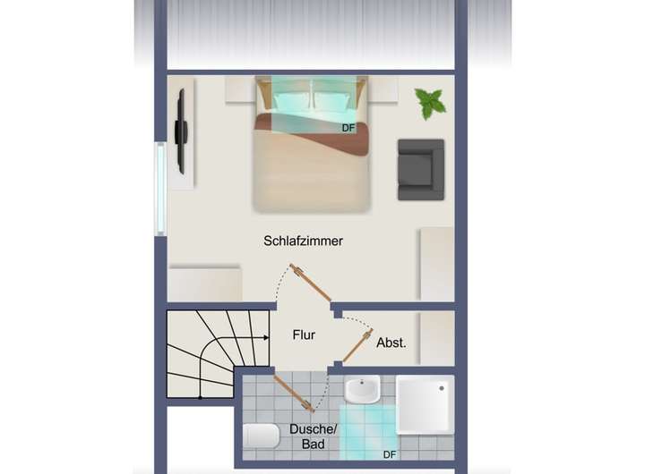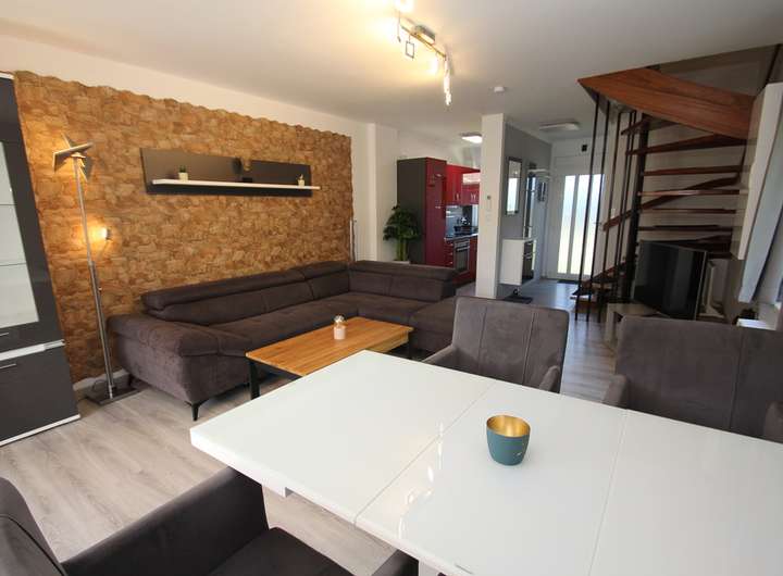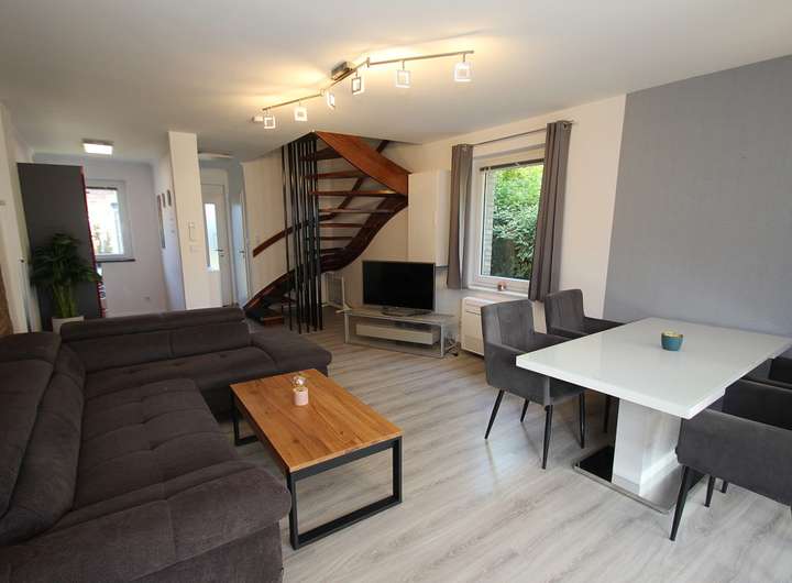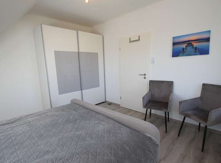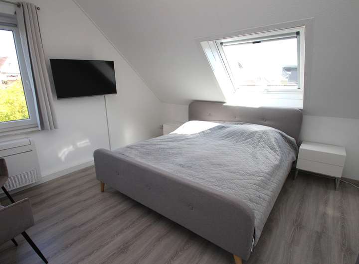 Dachschrägen vermitteln hier ein Gefühl von Gemütlichkeit. Ein echtes Highlight ist der neuwertige und stilvolle Zustand. Die Eigentümer haben die Einheit aufwendig saniert und komplett grunderneuert. Die Möbel und Farben harmonieren und vermitteln ein Gefühl des Wohlbefindens. Ein weiterer Pluspunkt ist die Luft-Luft Wärmepumpe im Erd- und Obergeschoss, welche über eine Heiz- und Kühlfunktion verfügt.