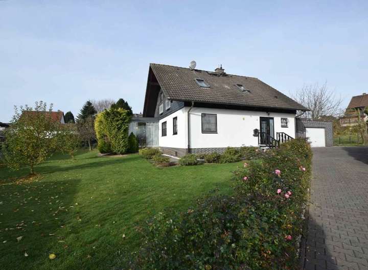 Schönes, gepflegtes Einfamilienhaus im Landhausstil mit Keller + 2 Garagen auf großem Grundstück.