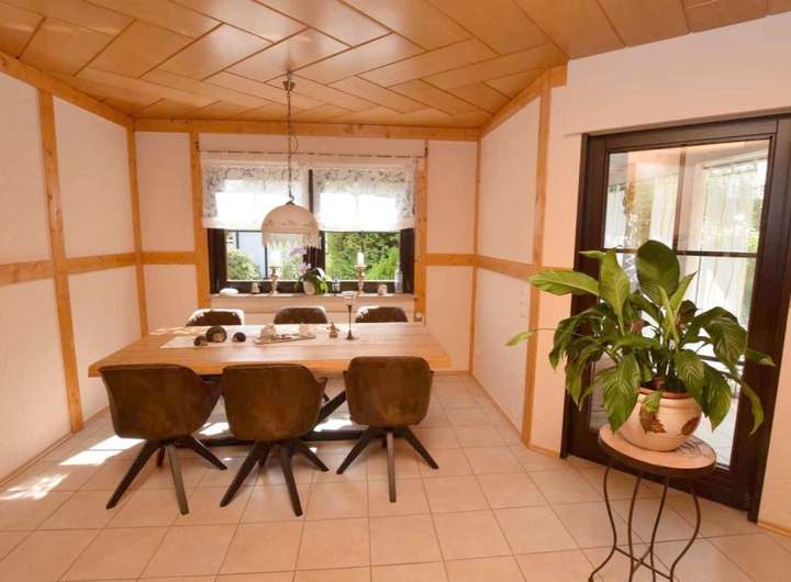 Dieses wunderschöne, gemütliche Einfamilienhaus in Wolsdorf bietet 156m² Wohnfläche und befindet sich in einem gepflegten Zustand. Viel Holz gibt dem Haus eine warme, gemütliche Atmosphäre. Im Erdgeschoss finden Sie einen offenen Wohn- und Essbereich mit Kamin, eine gemütliche Küche mit Vollholz-Einbauküche und Essplatz sowie einen lichtdurchfluteten Wintergarten, den man im Sommer öffnen kann. Zur weiteren Ausstattung gehören 2 Bäder, eine Sauna mit Dusche und der Keller, der viel Stauraum garantiert. Ein tolles Familienhaus mit zeitloser Architektur. Freuen Sie sich auf eine Besichtigung. Gern vereinbaren wir einen Termin mit Ihnen.