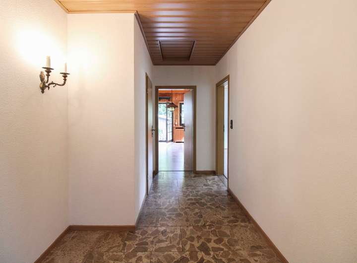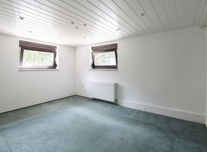 Das Untergeschoss verfügt über zwei weitere, vielseitig nutzbare Räume sowie ein Badezimmer mit Dusche. Zudem befinden sich hier der Heizungsraum mit Öltank – ein direkter Zugang zum Garten ist vom Untergeschoss ebenfalls möglich.