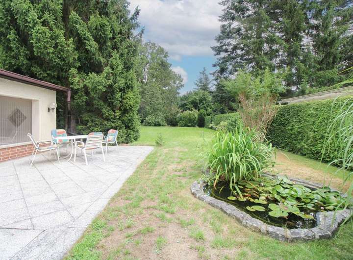Der kleine Gartenteich, der großzügige Garten und die ruhige Lage machen dieses Haus zu einem echten Wohlfühlort.