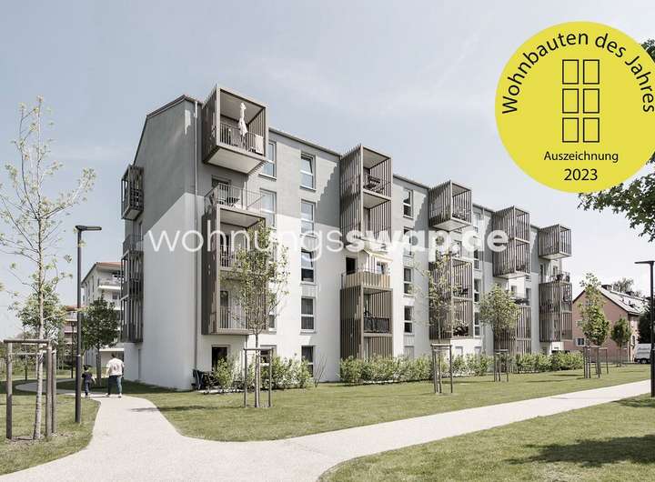 Zur Tauschen steht eine moderne und energieeffiziente 2-Zimmer-Wohnung im Erdgeschoss eines Neubaus in der Kämpferstraße 24 in München (Bezirk Milbertshofen-Am Hart). Die Wohnung gehört zur Siedlung Münchener Wohnen und bietet ein komfortables und nachhaltiges Wohnumfeld.