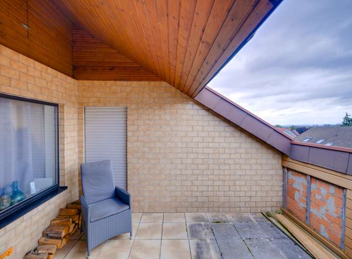 Das Dachgeschoss besticht durch offene Raumwirkung unter der Dachschräge und große Fenster, die den Wohn- und Essbereich besonders freundlich und einladend gestalten. Die schöne, großzügige Loggia gewährt Ihnen sonnige Stunden und einen schönen Ausblick in den Garten. Die Loggia können Sie komfortabel sowohl vom Wohnzimmer aus als auch von der Diele und von einem Schlafzimmer aus betreten. Der Küchenbereich ist separat und mit einer funktionalen Küche ausgestattet. Der Schlafbereich bietet Ruhe und Gemütlichkeit, ein weiteres Zimmer kann flexibel genutzt werden. Das Tageslichtbad ist mit Badewanne, Dusche und Waschbecken ausgestattet.
