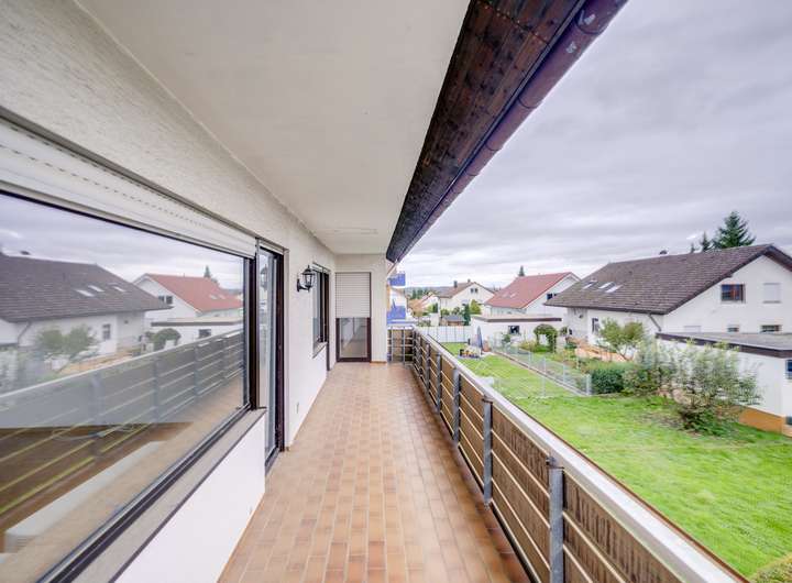 Wohnbereich mit Zugang zum großzügigen, sonnigen Balkon
