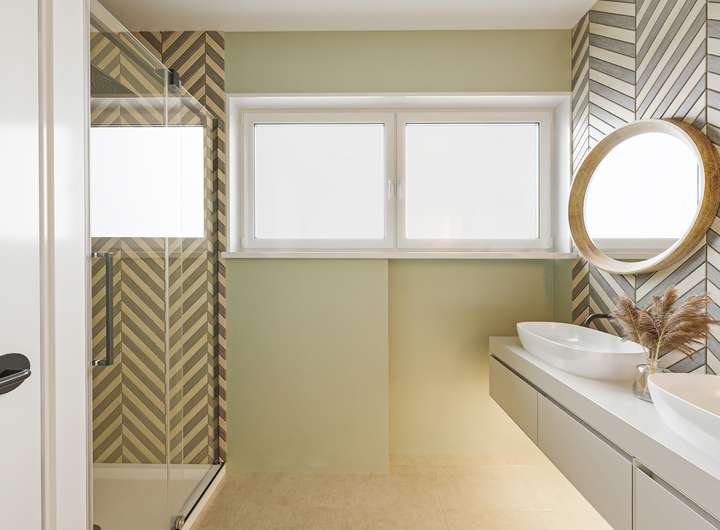 Tageslicht-Badezimmer mit Dusche und Badewanne