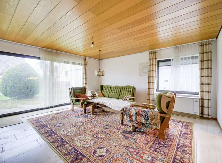 Großzügiges Wohnzimmer mit Zugang zur Terrasse und zum Traum-Garten, ideal für Garten- und Sonnenliebhaber