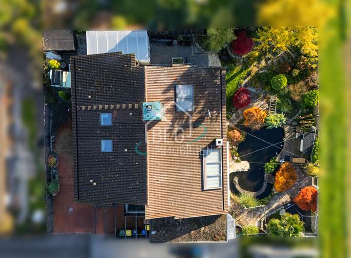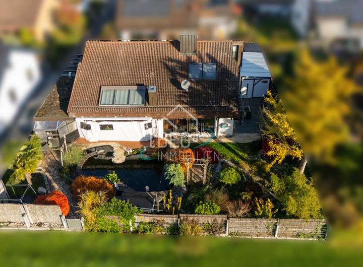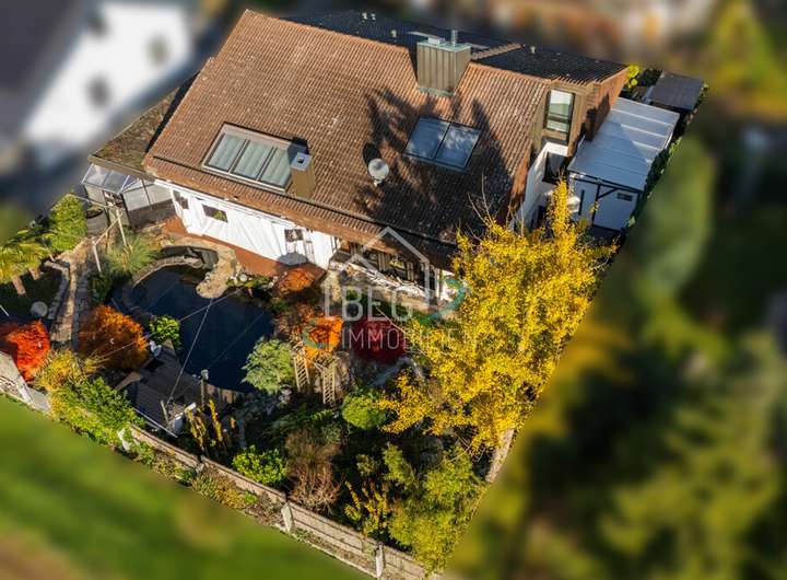 Das Haus ist voll unterkellert und bietet neben mehreren Abstellräumen auch einen Saunabereich mit Dusche und WC sowie direkten Zugang zum Garten. Der Außenbereich ist sehr gepflegt und vielseitig gestaltet: mit Gartenhütte, überdachter Terrasse, Voliere, Gartenteich sowie einem Anbau mit zusätzlichem Stauraum.