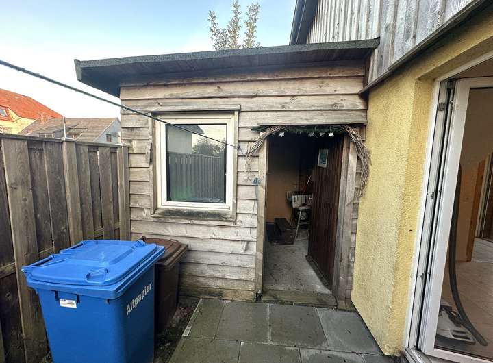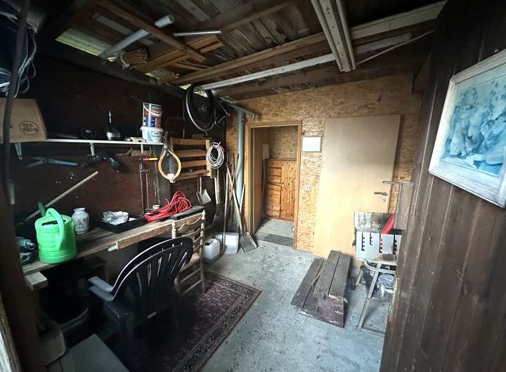 Zum Haus gehört ein schöner Garten, der sich perfekt zum Entspannen, Gärtnern oder geselligen Beisammensein eignet. Ein praktischer Schuppen bietet zusätzlichen Stauraum für Fahrräder, Gartengeräte oder Hobbybedarf.