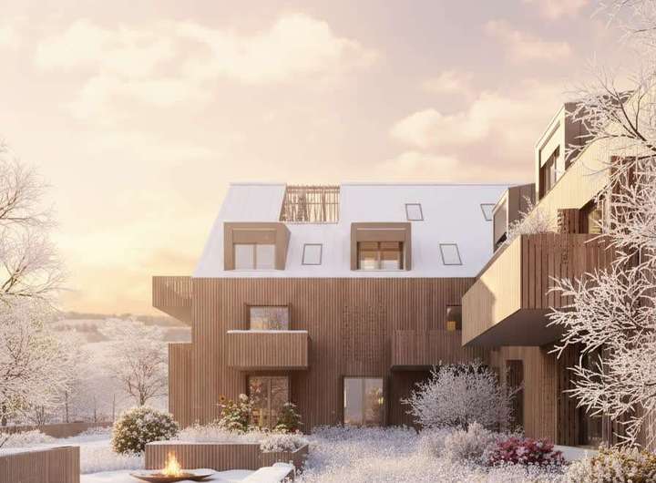 + Einzigartige Architektur in harmonischer Farbgebung mit gemütlichen Holz