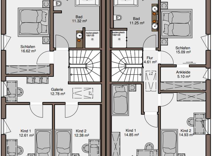 Familienfreundliche Doppelhaushälfte auf Bodenplatte.