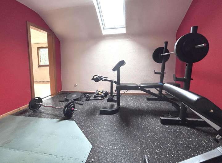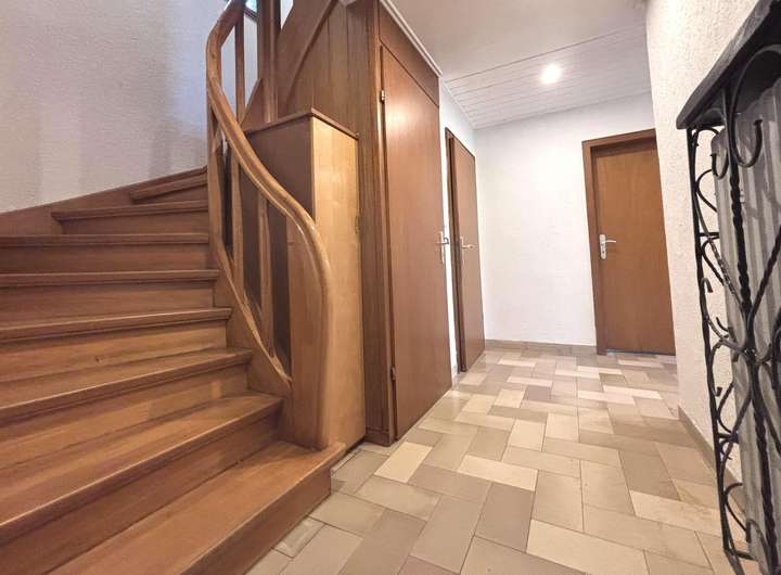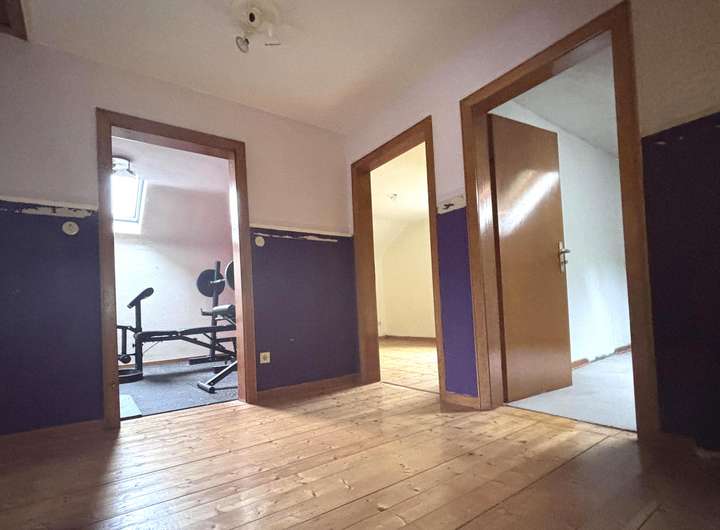 Über die Treppe gelangen Sie in die obere Schlafebene. Hier stehen insgesamt vier weitere Zimmer und ein zusätzliches Bad zur Verfügung. Zwei Abstellräume sowie ein separates WC bieten zusätzlichen Stauraum und Komfort. Aufgrund der Raumaufteilung besteht die Möglichkeit, auf dieser Ebene eine zweite Wohneinheit zu schaffen – lediglich eine Küche müsste hierfür ergänzt werden.