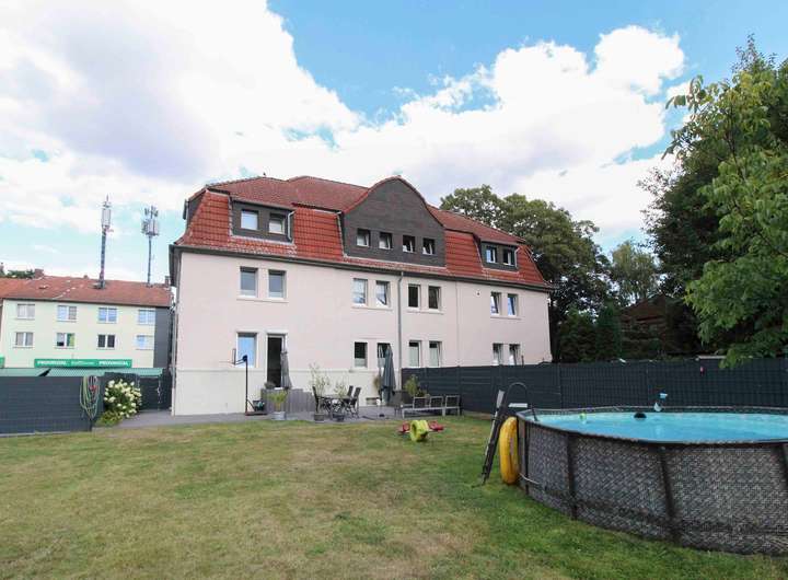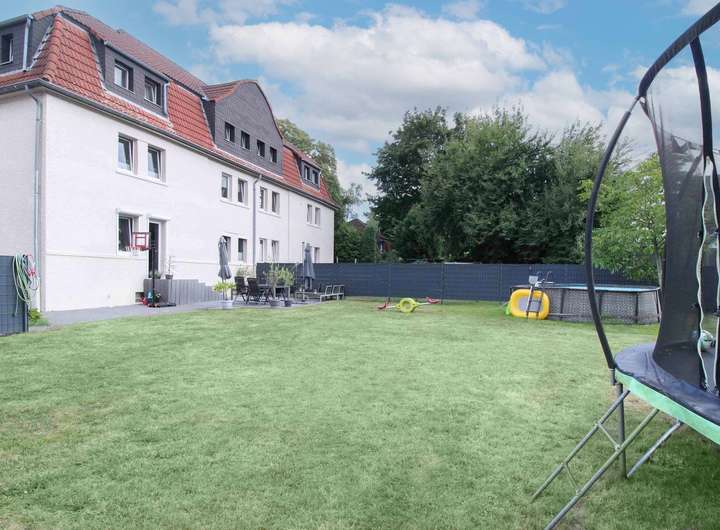 Mit einer Gesamtwohnfläche von ca. 419,97 m² und einer Jahresnettokaltmiete von aktuell rund 17.556 € bietet die Immobilie bereits heute eine sichere Grundlage. Gleichzeitig eröffnet die bezugsfreie Haushälfte vielfältige Perspektiven: Für Eigennutzer ergibt sich die Möglichkeit, den Traum vom Eigenheim zu realisieren und gleichzeitig durch die Mieteinnahmen der Nachbarhaushälfte eine spürbare finanzielle Entlastung zu erhalten. Für Familien oder Mehrgenerationenhaushalte bietet sich die Chance, Eltern, Geschwister oder Kinder direkt nebenan unterzubringen, ohne dabei auf die eigene Privatsphäre verzichten zu müssen. Für Kapitalanleger wiederum ist das Objekt nicht nur durch die bestehende Vermietung interessant, sondern auch durch das zusätzliche Ausbaupotenzial. Neben der Option, das großzügige Dachgeschoss weiter auszubauen, besteht hinter dem Gebäude die Möglichkeit, durch einen Anbau zusätzlichen Wohnraum zu schaffen. Darüber hinaus lässt die Grundstückssituation nach § 34 BauNVO NRW auch eine ergänzende Bebauung rechts und links des Gebäudes zu, wodurch sich langfristig erhebliche Wertsteigerungschancen ergeben.