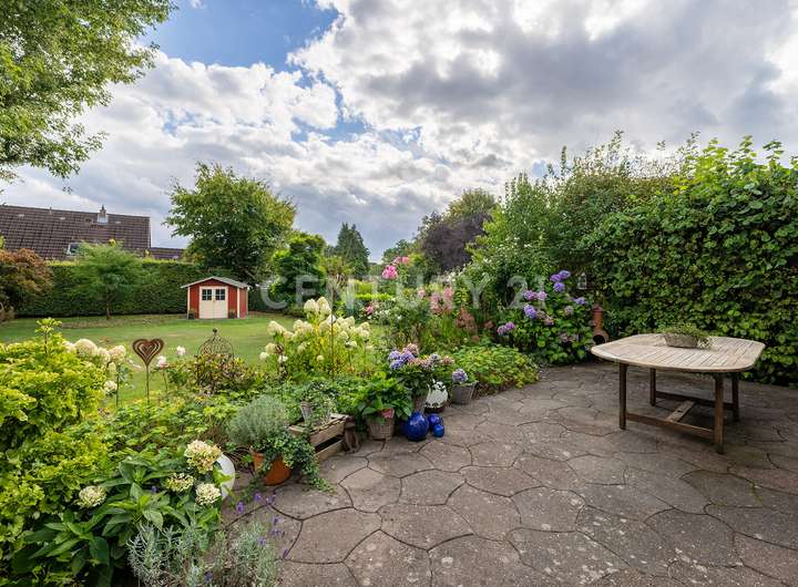 Weitere Utensilien (Spiel- und Gartengeräte) können Sie in dem angrenzenden zum Garten ausgerichteten Schuppen unterbringen.