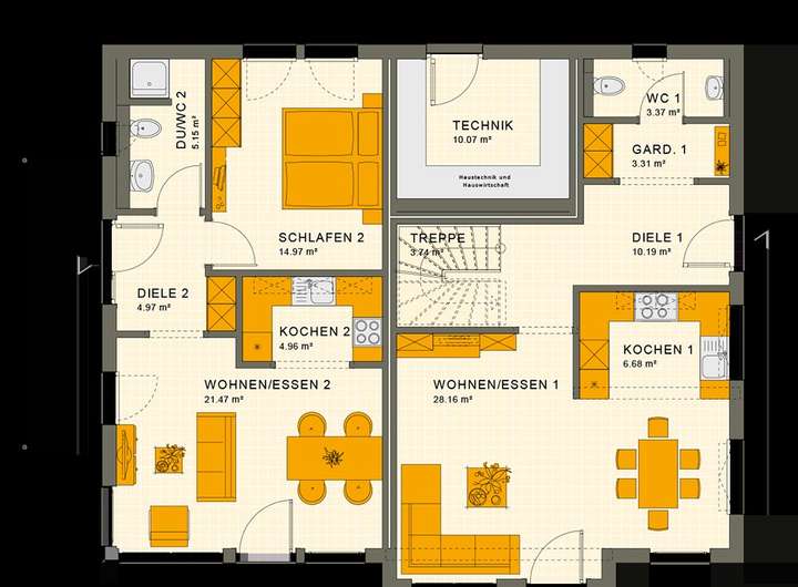 Ob Mehrgenerationenhaus oder flexibel für die Zukunft - das SOLUTION 230 bietet dir die Lösung: Zwei Wohneinheiten, die in Größe und Raumnutzung individuell an die Bedürfnisse der Bewohner angepasst sind. Die im Erdgeschoss gelegene Einliegerwohnung bietet mit gut 50 m² das ideale Wohnumfeld für einen 1- oder 2-Personenhaushalt. Wohn- und Lebensräume der danebenliegenden großen Wohnung erstrecken sich über das Erd- und das Obergeschoss. Im Erdgeschoss befindet sich das großzügige Wohn- und Esszimmer mit offener Küche. Im Obergeschoss sind neben dem Elternschlafzimmer mit eigenem Wellnessbad drei Zimmer mit separatem Bad untergebracht. SOLUTION 230 ist ein echtes Traumhaus, in dem sich auch deine große Familie garantiert wohlfühlen wird und mit dem Erker und Balkon kommen wir auf 250qm Wohnfläche. Bei Bedarf geht durch entsprechende Rastererweiterungen das Haus auch Richtung 300qm Wohnfläche. Sprechen Sie mich an, wir werden Ihre individuelle Lösung gemeinsam mit unseren Architekten für Sie finden!