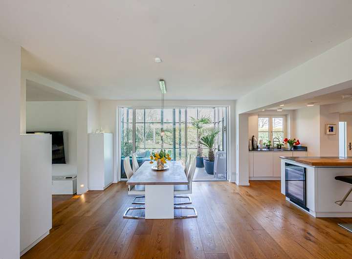 Dieses helle und in den letzten Jahren hochwertig renovierte bzw. umgebaute Einfamilienhaus, mit originalem Baujahr 1987, bietet eine sehr behagliche Wohnatmosphäre und einen wunderschönen, parkartigen Garten - eine Rarität in der immer enger bebauten Wohngegend in und um Berg.