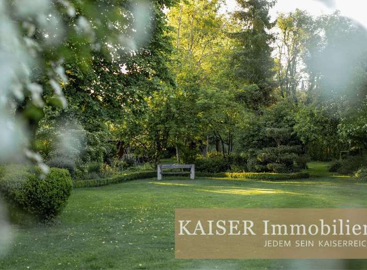 Der großzügige Garten ist sehr liebevoll und idyllisch angelegt. Blumenbeete, alte Bäume, einige Außen-Sitzplätze bieten ausreichend Raum zur Entfaltung und zu zahlreichen Rückzugsmöglichkeiten mit viel Sonne zu jeder Tageszeit. Ein Traum für Gartenliebhaber und Kinder, die hier endlos toben können! Es gibt eine Doppelgarage und weitere Parkmöglichkeiten neben dem Haus.