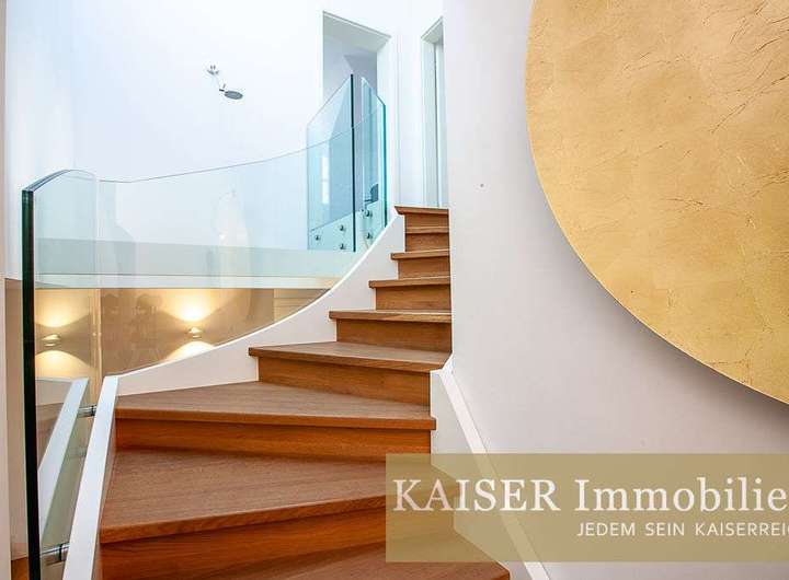 Treppen ins obere Geschoß Geländer mit Glas neu