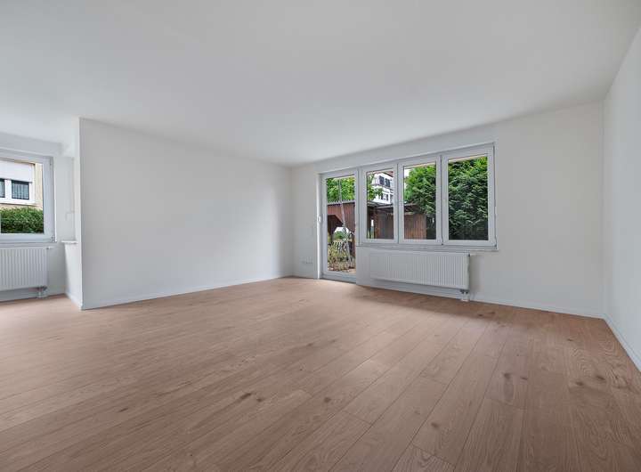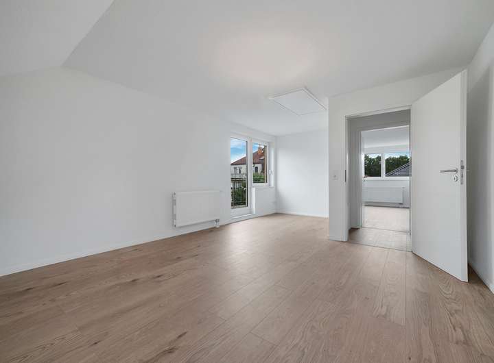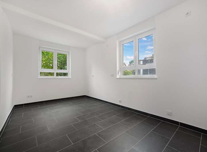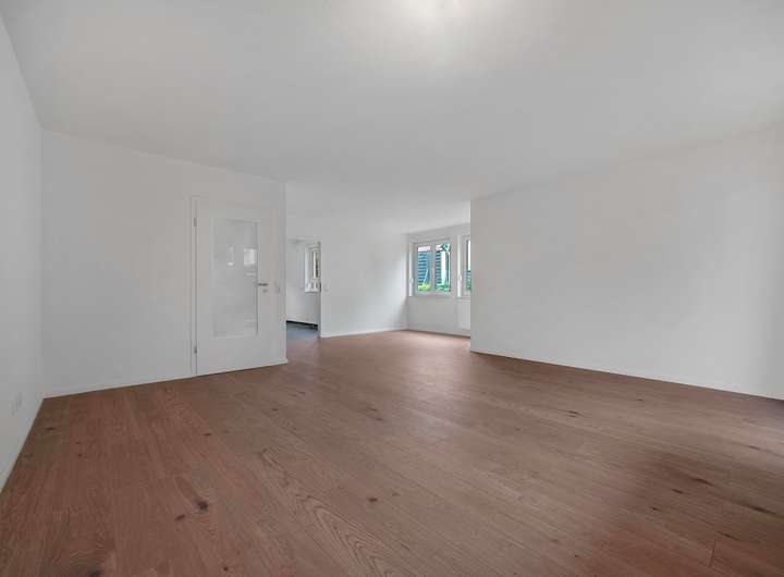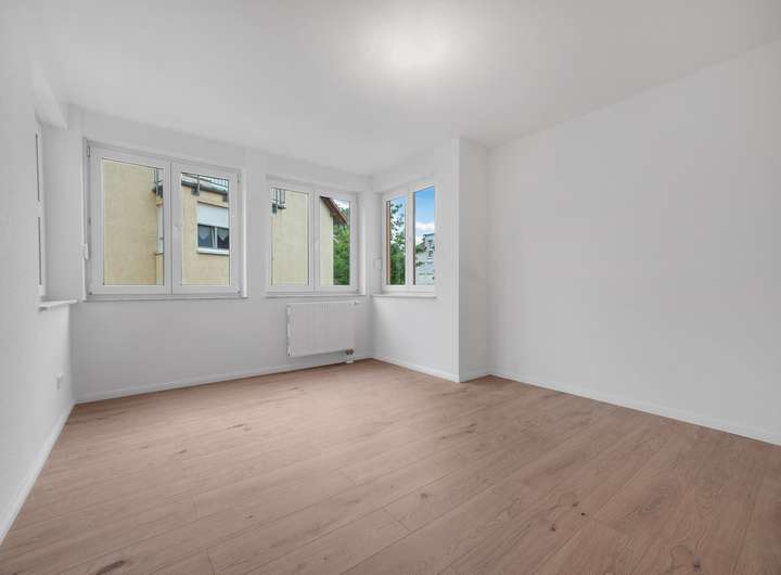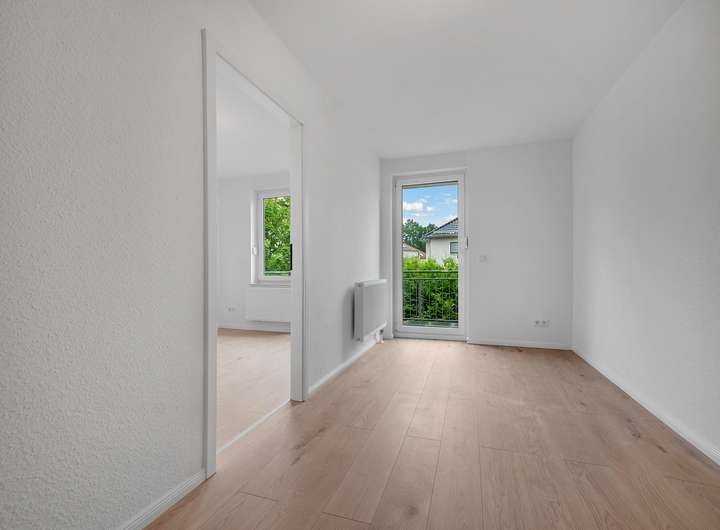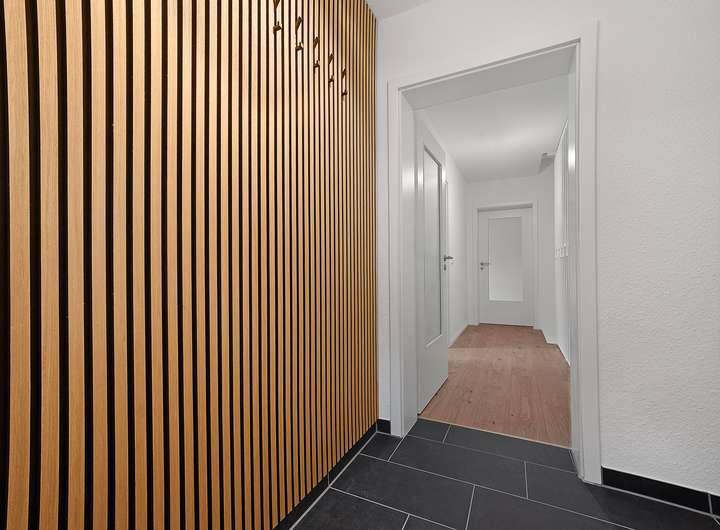 Bei der Modernisierung im Jahr 2024 wurde in den Wohnräumen hochwertige Fußböden in V-Fugen-Optik verlegt, die über eine hohe Beanspruchbarkeit verfügen. Die Wohnwände wurden tapeziert und sind farblich gestaltet, wodurch sie sich nahtlos ins Designkonzept der Wohnung einfügen.