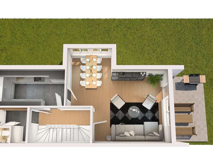 Im Erdgeschoss befindet sich der großzügige Wohn- und Essbereich