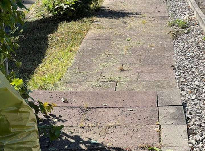 Lauschigem Freisitz mit Ausblick und gepflasterten Eingangsbereich für Tisch und Stuhl vor der Einliegerwohnung.