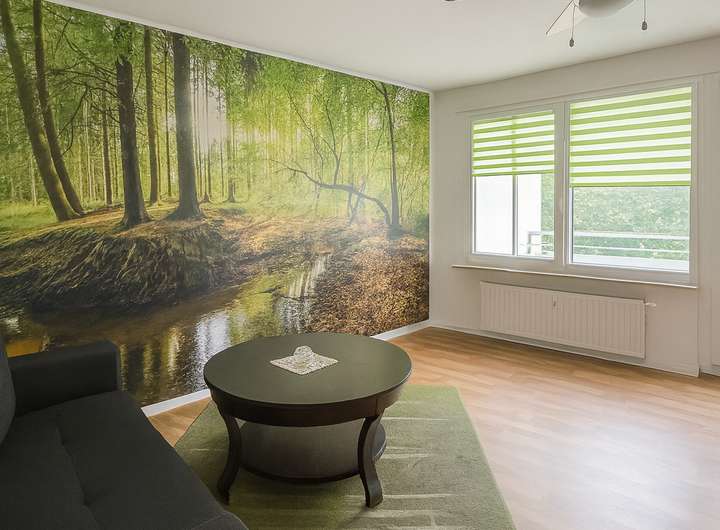 Alle Räume sind hell und freundlich geschnitten, das Tageslicht fällt durch große Fenster ein. Das Badezimmer ist funktional ausgestattet.
