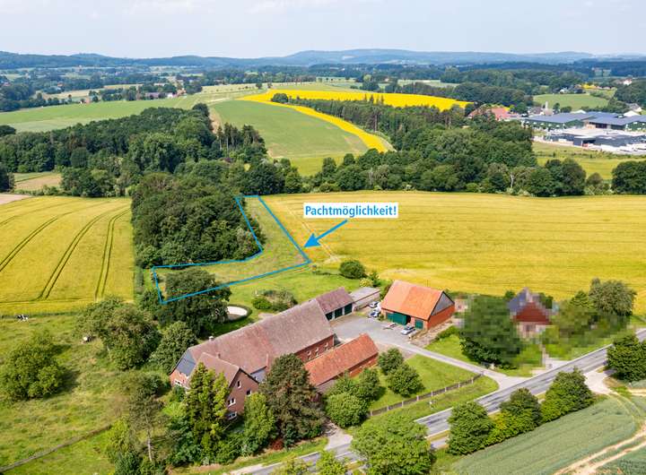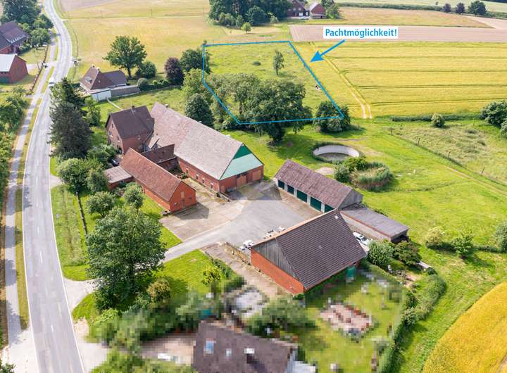 Zwei angrenzende Wiesenflächen können zusätzlich angepachtet werden. Für die Deele liegen Gestaltungsvorschläge für einen Umbau in 3 bis 4 Wohnungen vor - laden Sie sich diese im Exposé herunter!