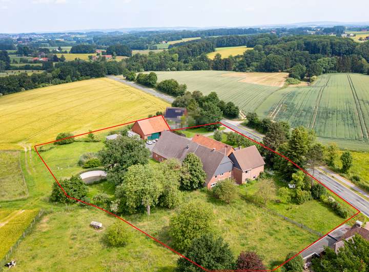 Erstmalig um 1500 urkundlich erwähnt bietet die Hofstelle nach erfolgten Umbauten und Erweiterungen heute ein Wohnhaus mit 353 m² Wfl., aufgeteilt auf 2 Wohnungen und mehr als 845 m² Nutzfläche! Der Pflegezustand aller Gebäude ist gut. Die Fenster wurden teilweise 2016 erneuert und die Etagenheizungen sind 2017 im Erdgeschoß und 2014 im Obergeschoß erneuert worden. Der Betrieb der Kleinkläranlage ist bis Mai 2043 genehmigt und ein Anschluss an das öffentliche Wassernetz ist vorhanden. Geheizt mit Flüssiggas. Der Tank ist gemietet. Ob Pferde- / Tierhaltung, generationsübergreifendes Wohnen oder den Wunsch nach nach viel Platz und Abstellfläche erfüllt die Hofstelle. Weiterer Vorteil ist die gute Erreichbarkeit von Bielefeld, Osnabrück oder Herford in Verbindung mit einem traumhaften Blick auf den Teutoburger Wald. Prüfen Sie selbst, wir zeigen es Ihnen gern!