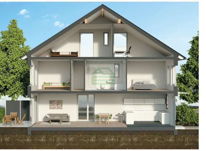 Das Haus verfügt über 5 Zimmer, darunter 4 geräumige Schlafzimmer und 2 moderne Bäder (Sonderausstattung im Dachgeschoss) und ein praktisches Gäste-WC. Die hochwertigen Bodenbeläge aus Fliesen und Vinylboden sorgen für eine ansprechende und pflegeleichte Wohnatmosphäre.